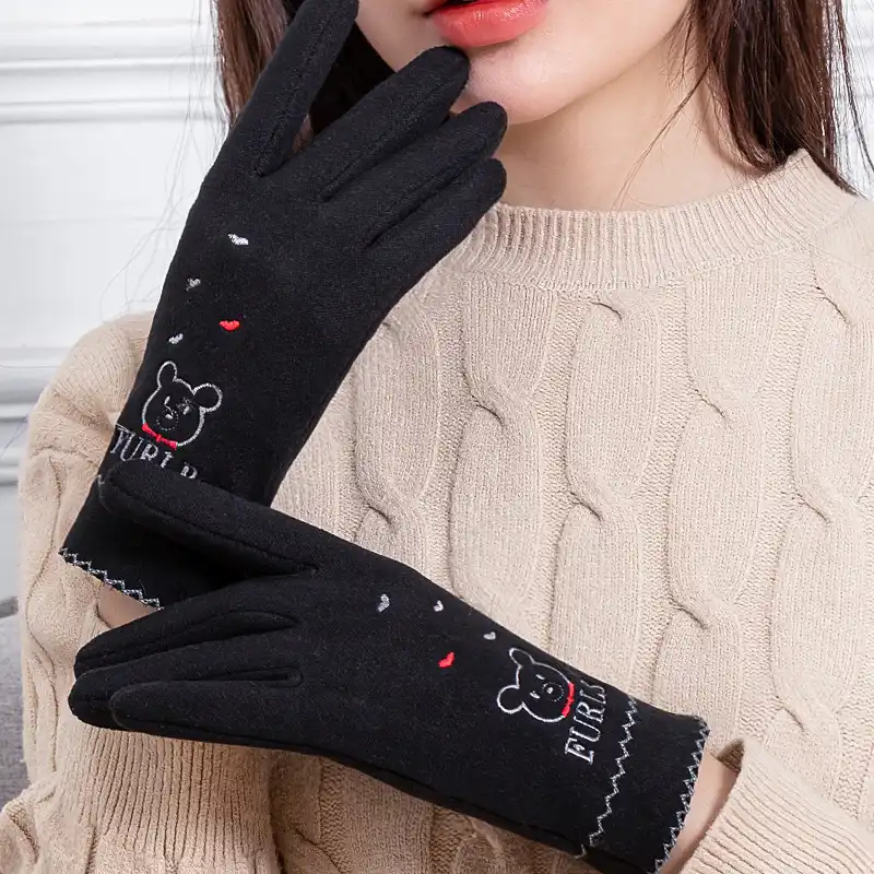 2018 kadin yeni kati eldiven lady siyah deri eldiven sonbahar kis sicak tavsan kurk eldivenler kis eldiven deri kadin eldiven