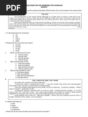 screening grade 6 english rat lobster